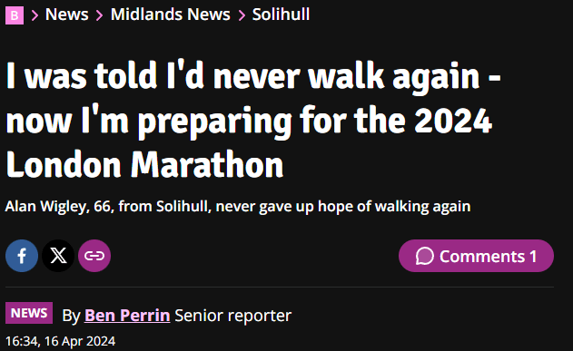 Birmingham Mail (online) piece about one of our London Marathon challenge participants, promoting his fundraising page.