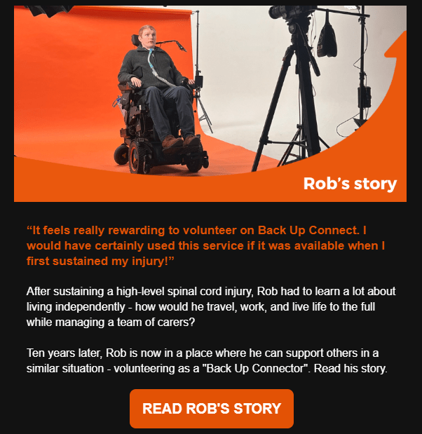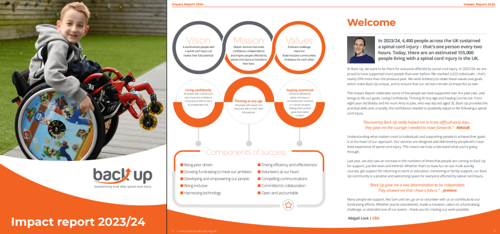 On this page, I’ve decided to give a case study from my personal favourite communications position – working at spinal cord injury charity Back Up. Hopefully this page will give some great examples of my comms and creative skillset!