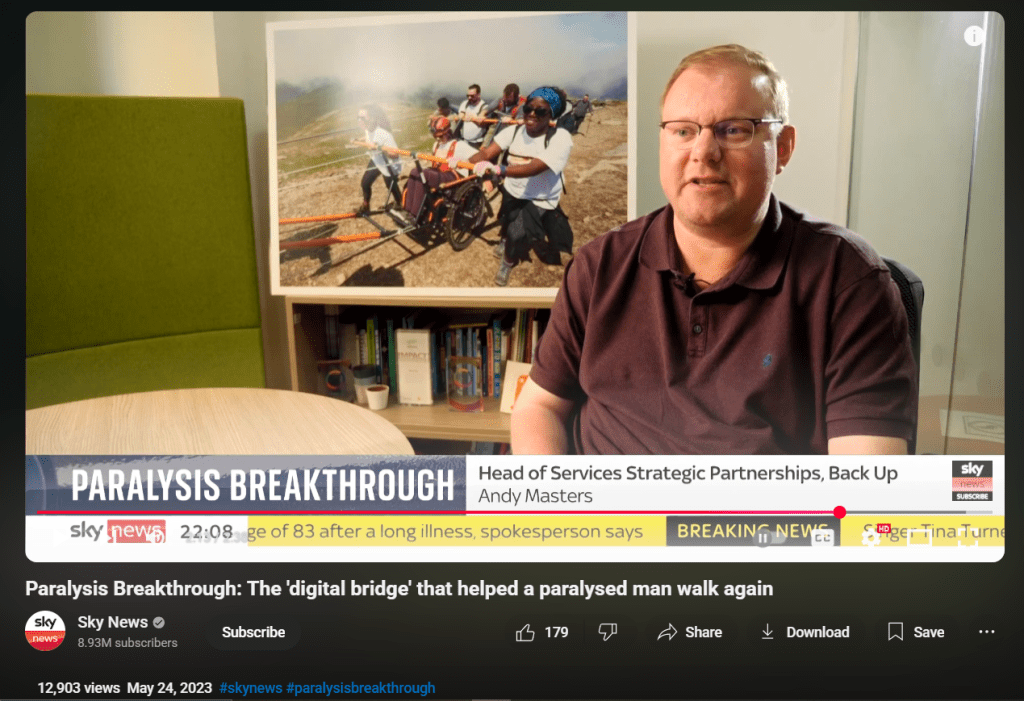 Sky News (broadcast and online) interview with Back Up Head of Services Strategic Partnerships about developments in paralysis treatment.