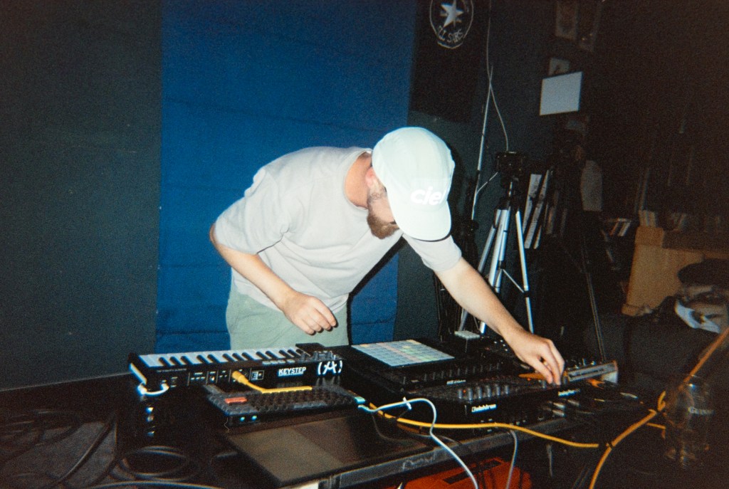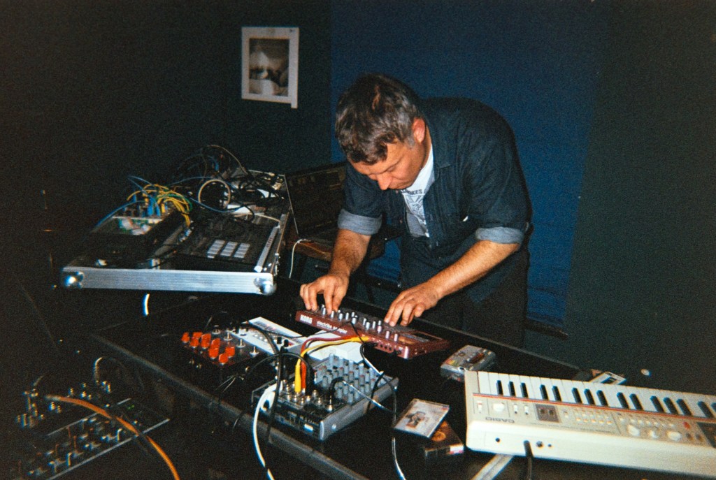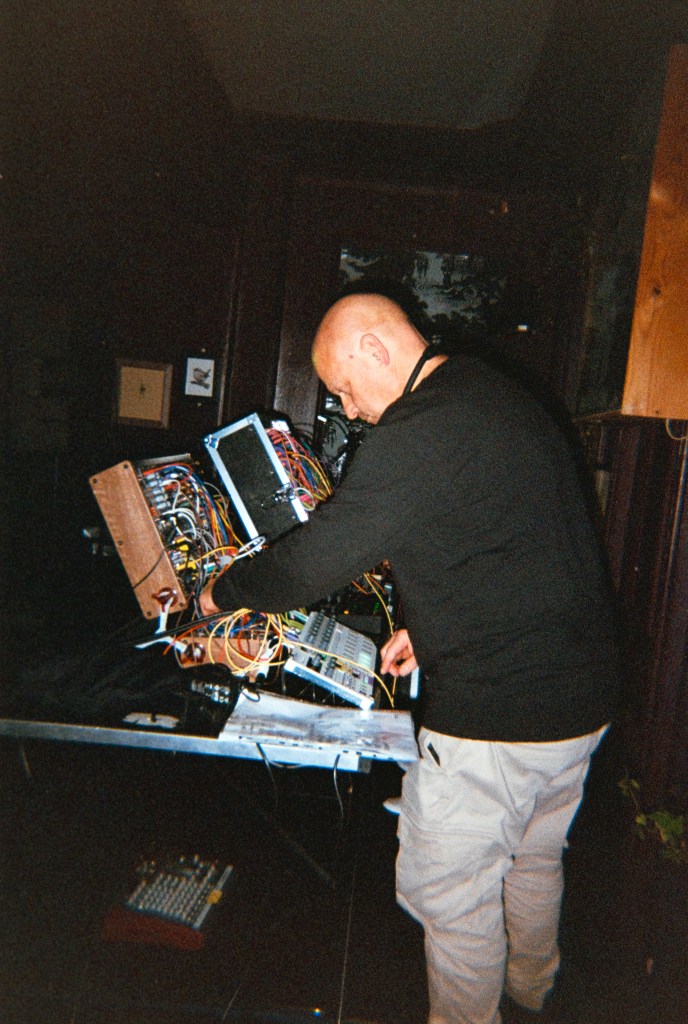 Dark industrial dub artist Bretwalda, New York based electronica from Varsity Star, and one half of Sons of Geometry patching a modular synth.